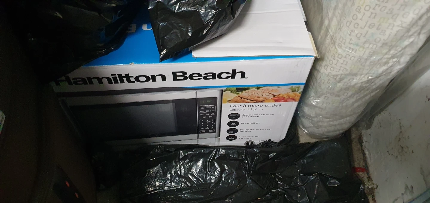 Hamilton Beach microwave oven with a 1.1 cu. ft empty box