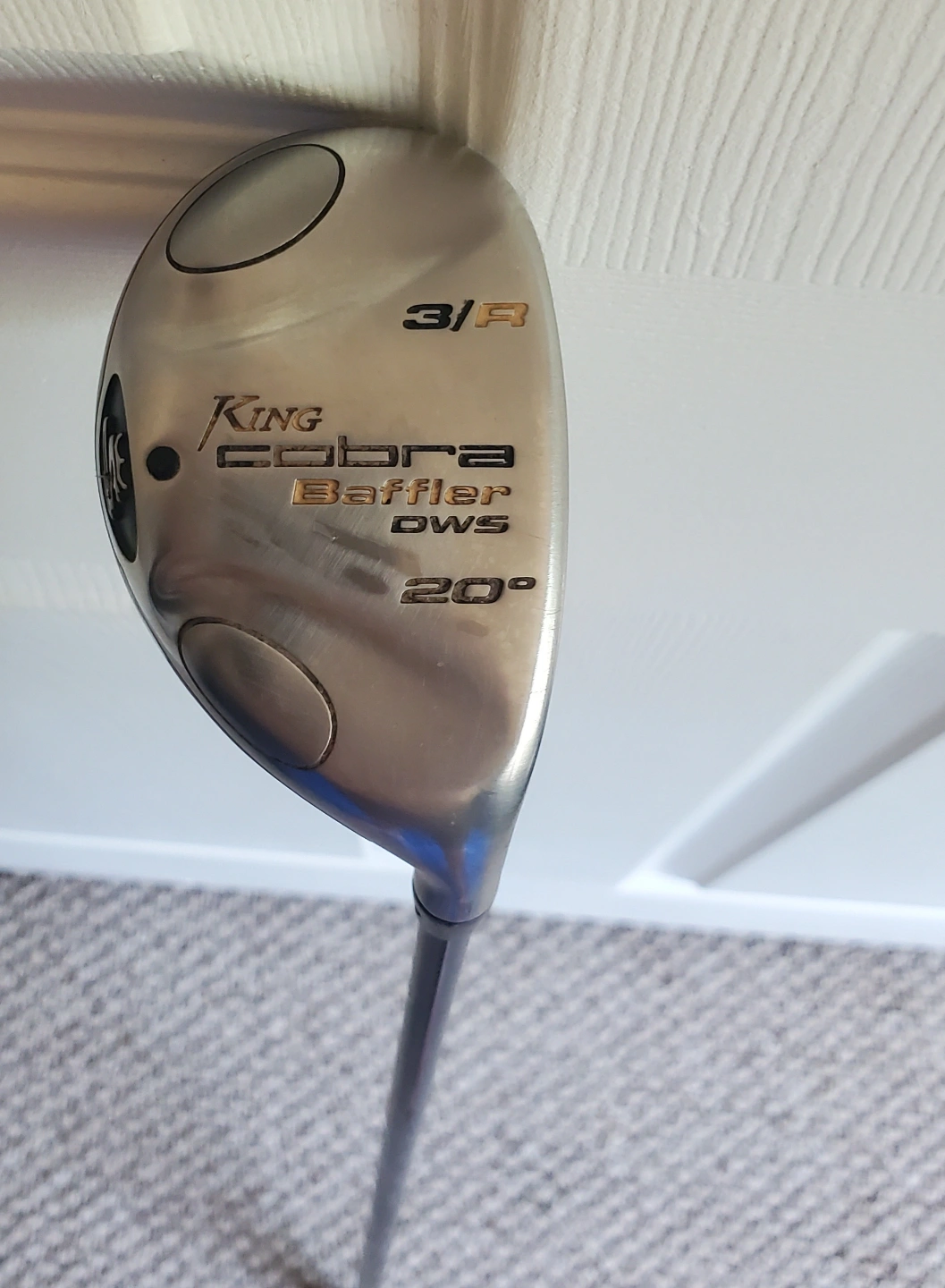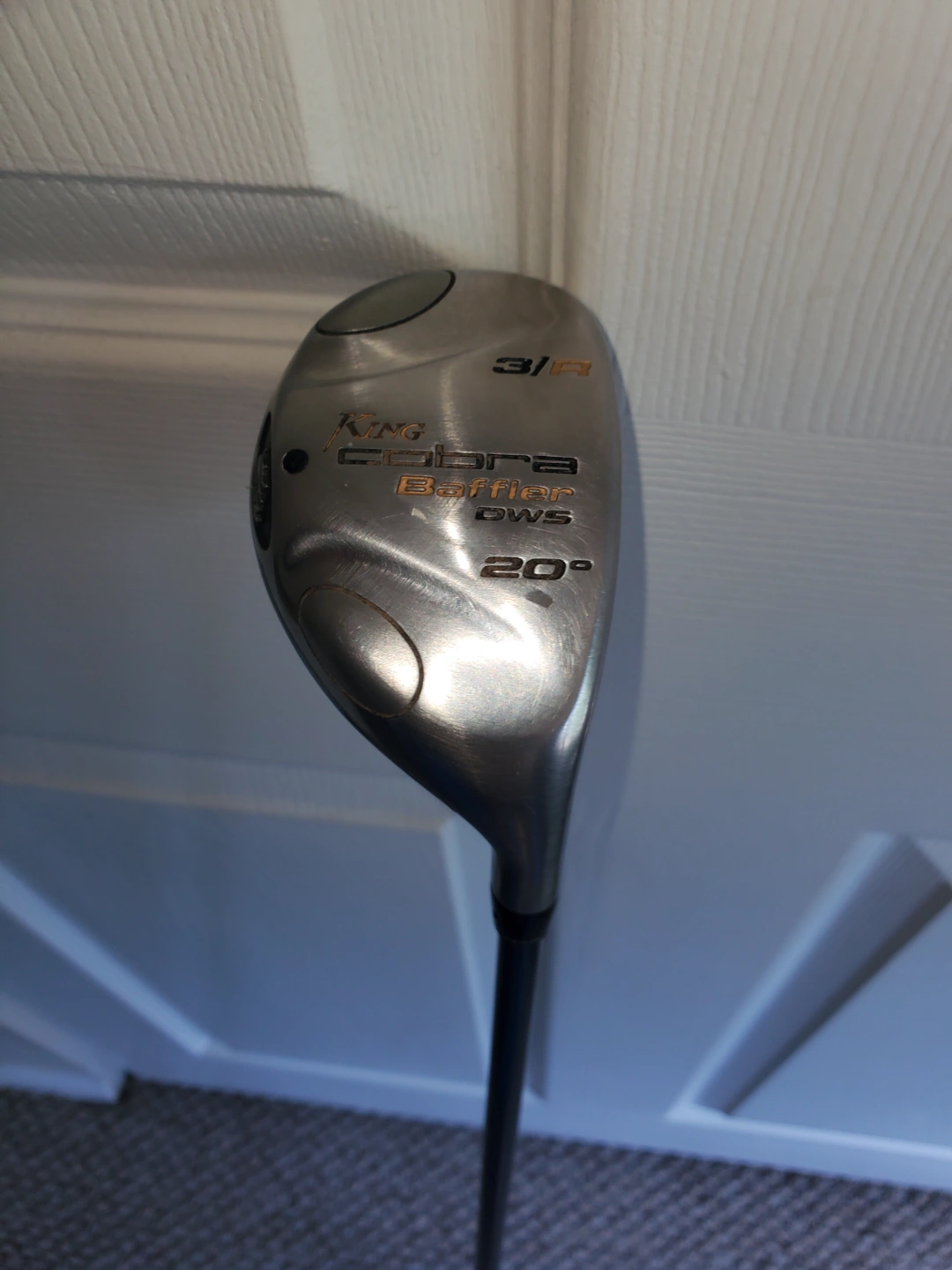 Used Cobra King Baffler DWS hybrid golf club. 20 degree loft. Right-handed, 3 hybrid. Good condition. Graphite shaft.