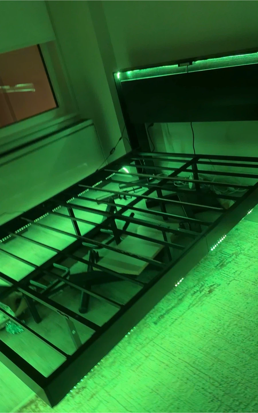 Modern LED Platform Bed Frame w/ USB Charging – Like New