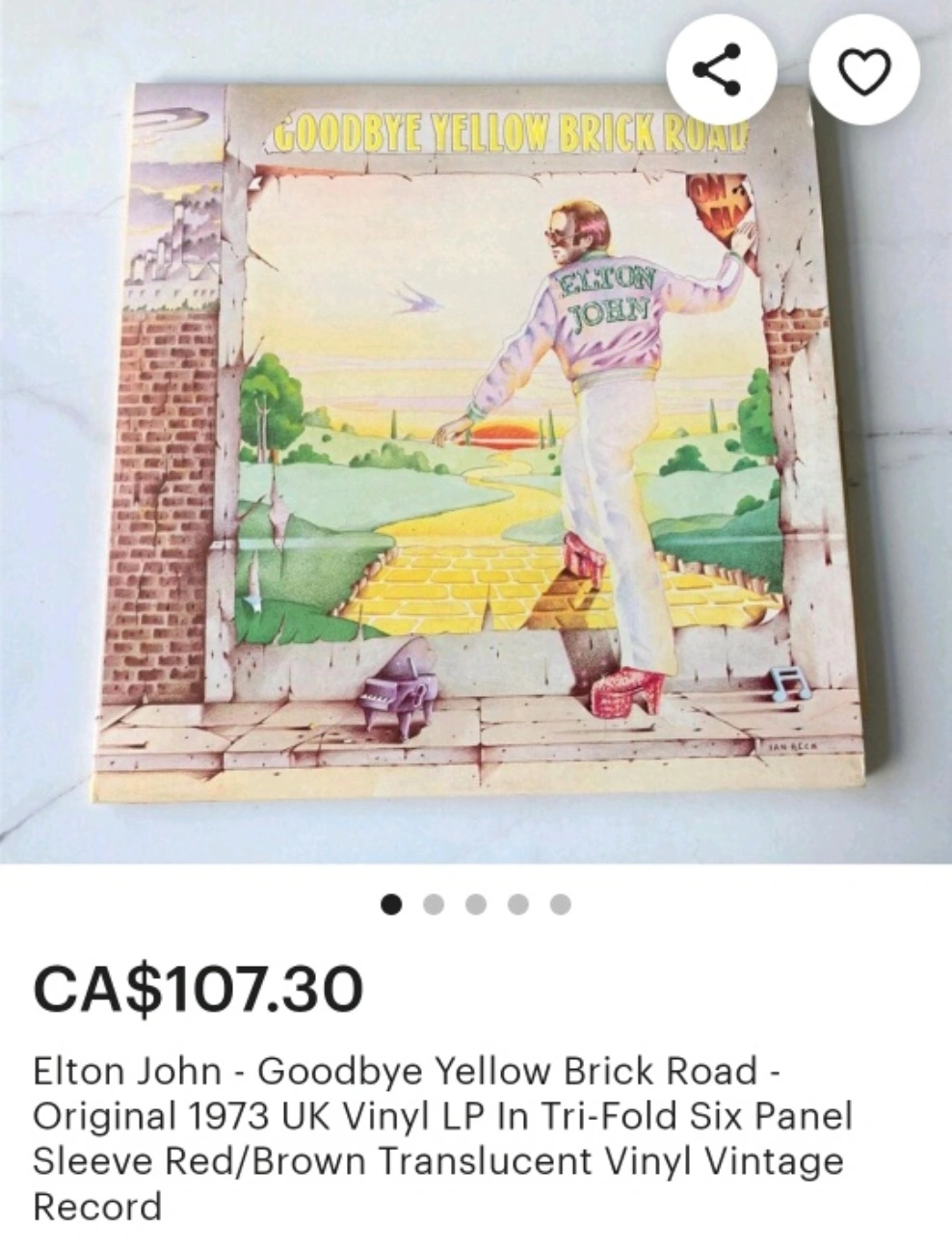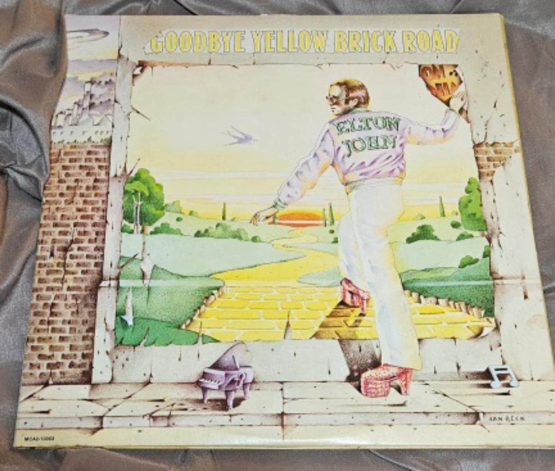 Selling a vintage Elton John - Goodbye Yellow Brick Road Vinyl LP. It's the original 1973 UK pressing in a tri-fold six-panel sleeve with red/brown translucent vinyl. A great addition to any record collection!