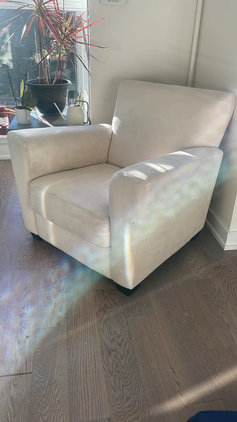 Selling a comfortable armchair in a neutral beige colour. It's in good condition and would be a great addition to any living room or reading nook