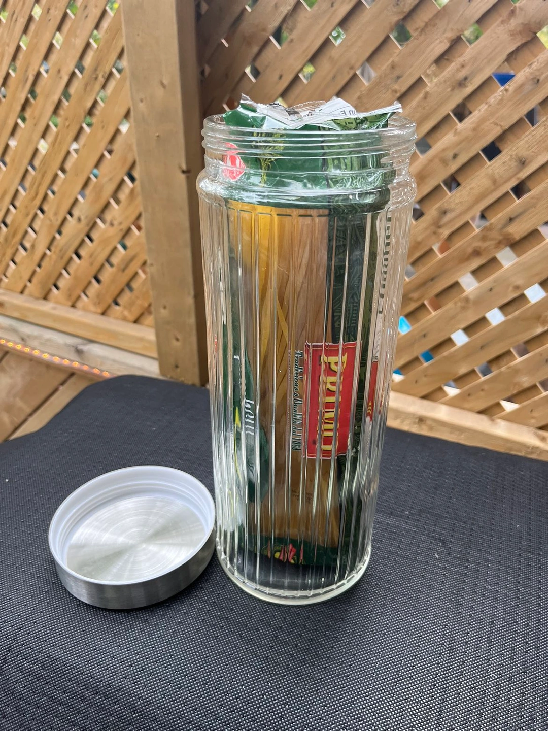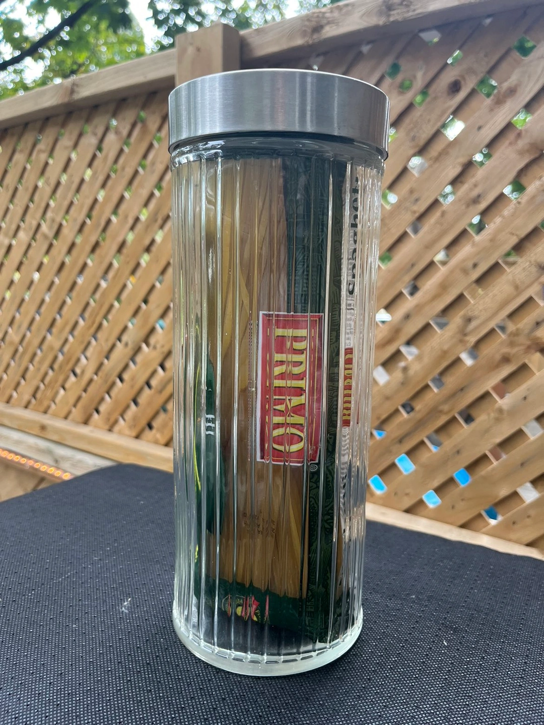 Fits 2 packages of spaghetti or lasagna noodles (for an idea of how much it holds)