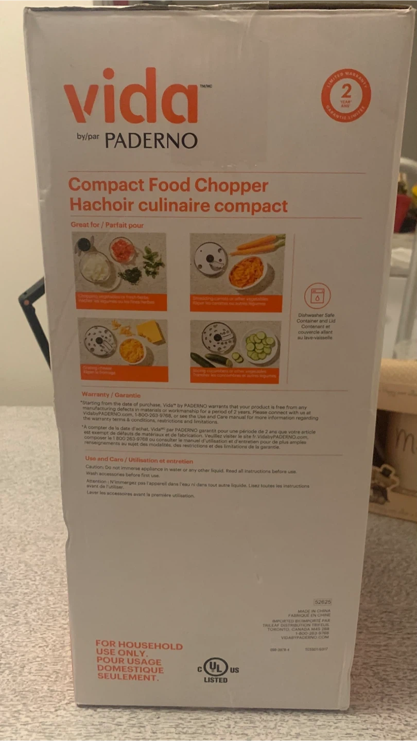 Unopened Vida by Paderno Compact Food Chopper
