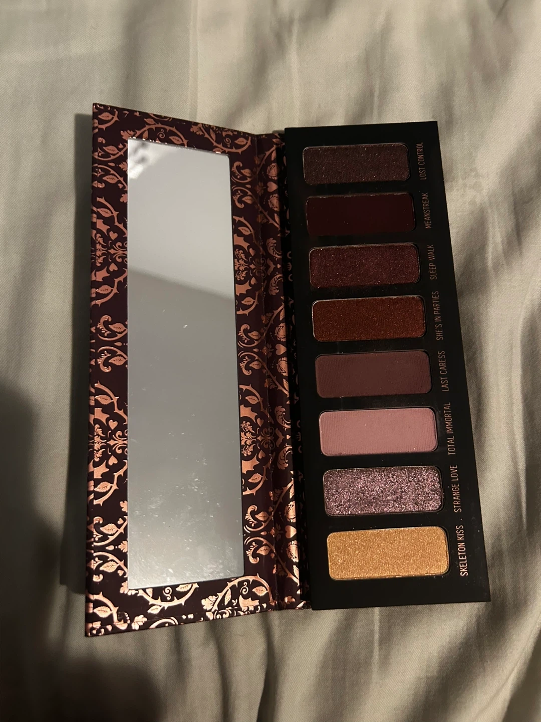 This is the Melt Cosmetics She's In Parties eyeshadow palette. It features 8 rich, pigmented shades. The palette is in a compact case with a mirror inside.