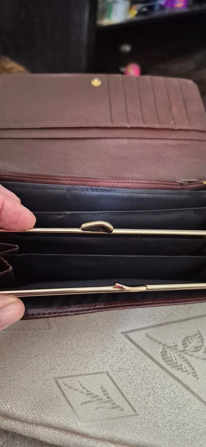 Selling a brown leather wallet. It has some signs of wear but still has lots of life left! It features several card slots and compartments.