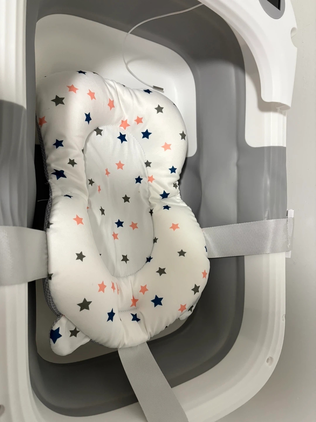 Folding Baby Bath Tub with Soft Support Cushion and Temperature Sensor.