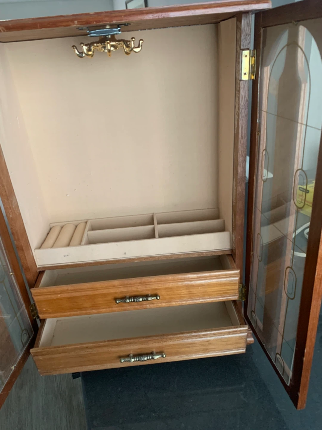 Wooden Jewelry Box with Glass Doors