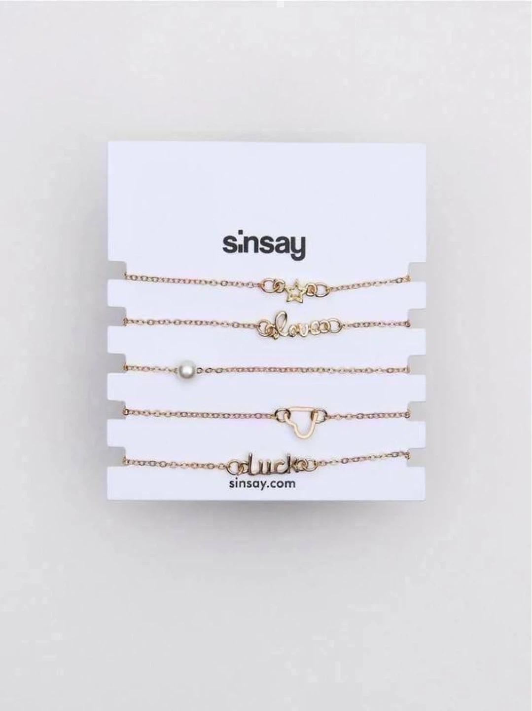 Includes 5 stylish delicate chain bracelets with different designs: star, “love” charm, pearl, heart, and “luck” charm 💛