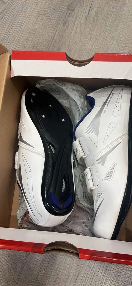Brand new in box cycling shoes, size 40 EU / 8.5 US. Never used. By default, these are 3-bolt cycling shoes but can be easily converted to SPD (2-bolt). Let me know if you're interested!