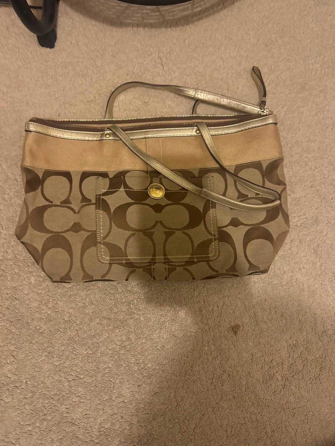 Buy & SellCoach Signature C Tote BagCoach Signature C Tote Bag$20Beige canvas tote bag. Gold-toned hardware. Zip closure. Front pocket. Shoulder straps.BrandCoachWHERE TO MEETThe Gore Road & Ebenezer RoadView MapSELLERMarkusEbenezer181 review1 chats·1 favorites·63 viewsSEND CHAT TO SELLERHi Markus! I’m interested in your listing.Hi Markus! I’m interested in your listing.Get the Karrot app to chatSign In to chat
