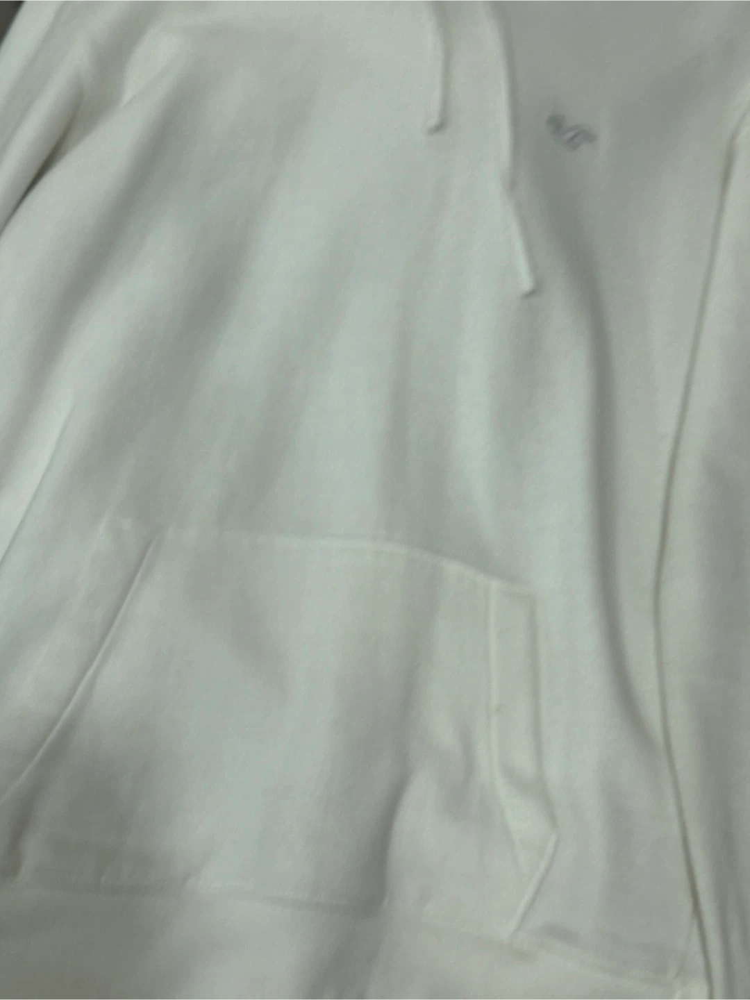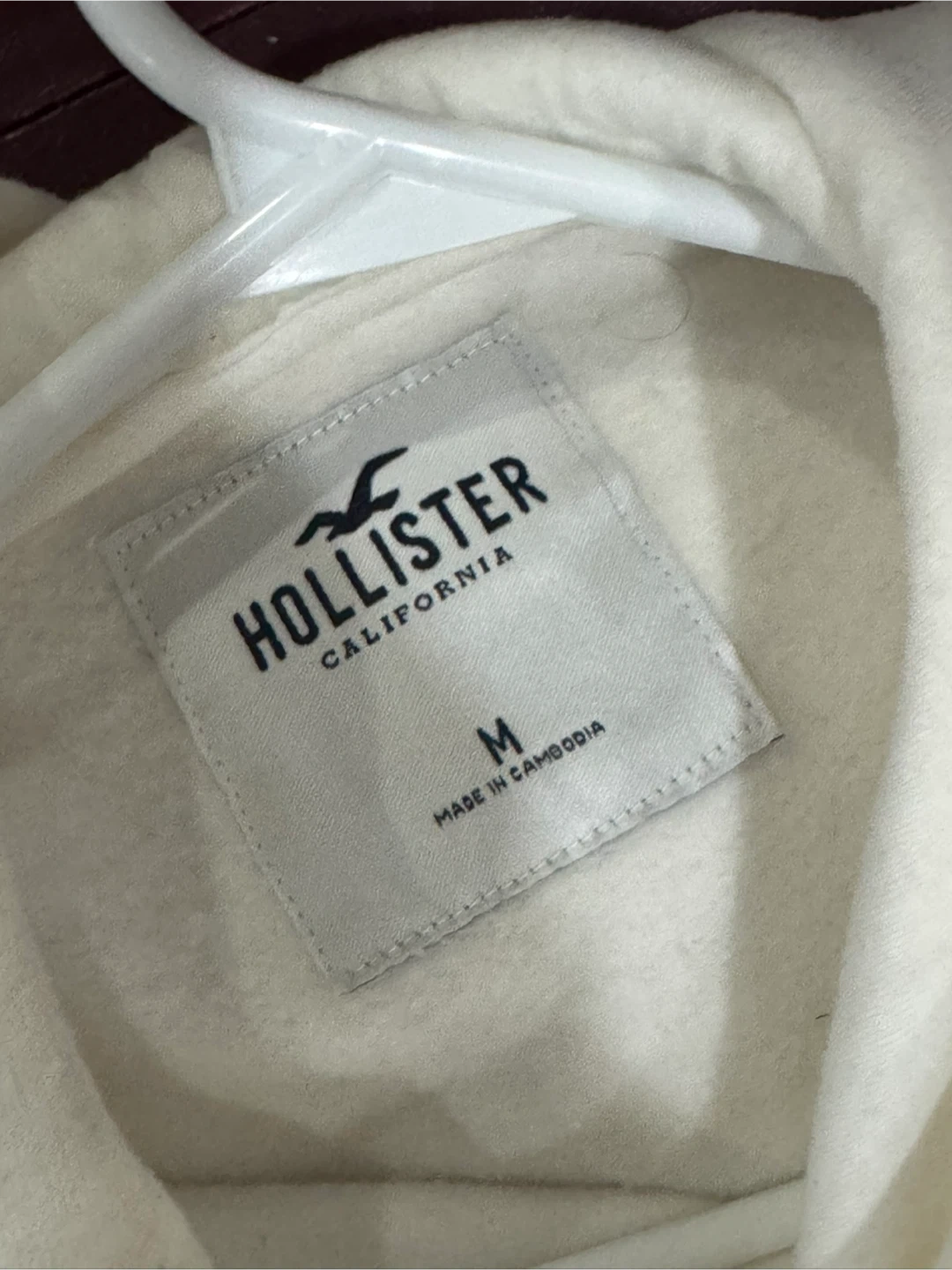 Selling a Hollister hoodie in white, size medium. It's in good condition and ready for a new owner!