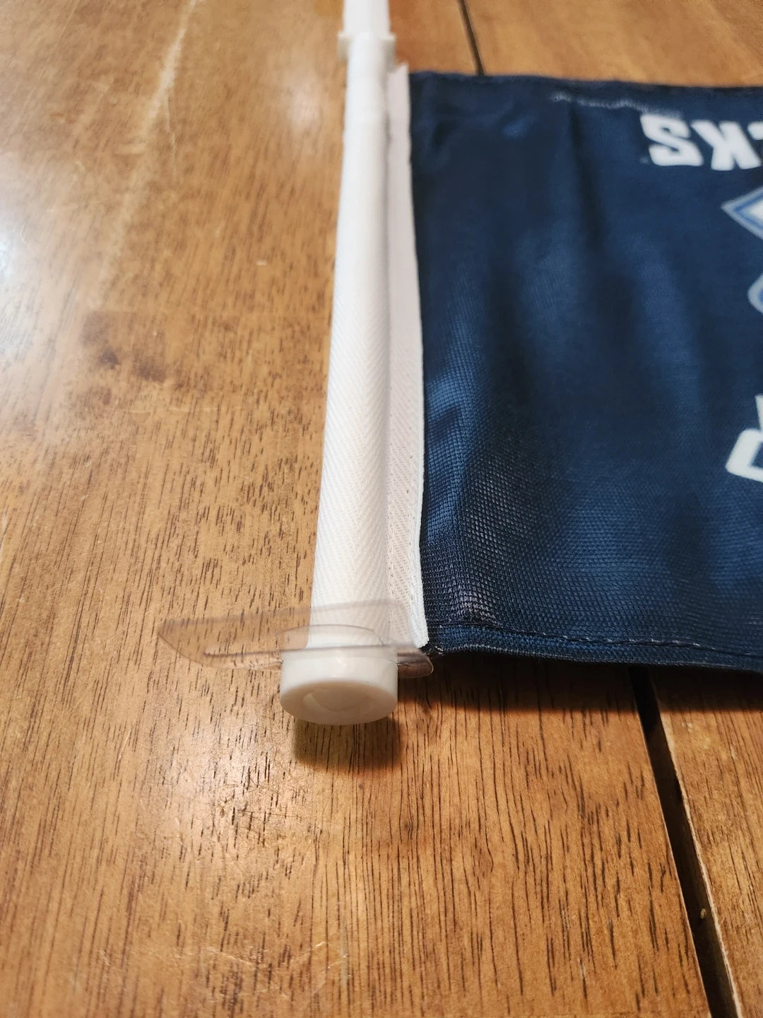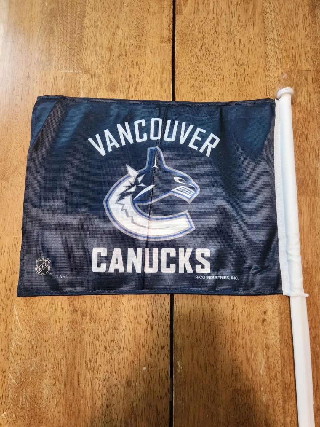 Show your team spirit with this Vancouver Canucks car flag. It's made by Rico Industries, Inc. and is officially licensed by the NHL. Perfect for any Canucks fan heading to a game or just cruising around town!