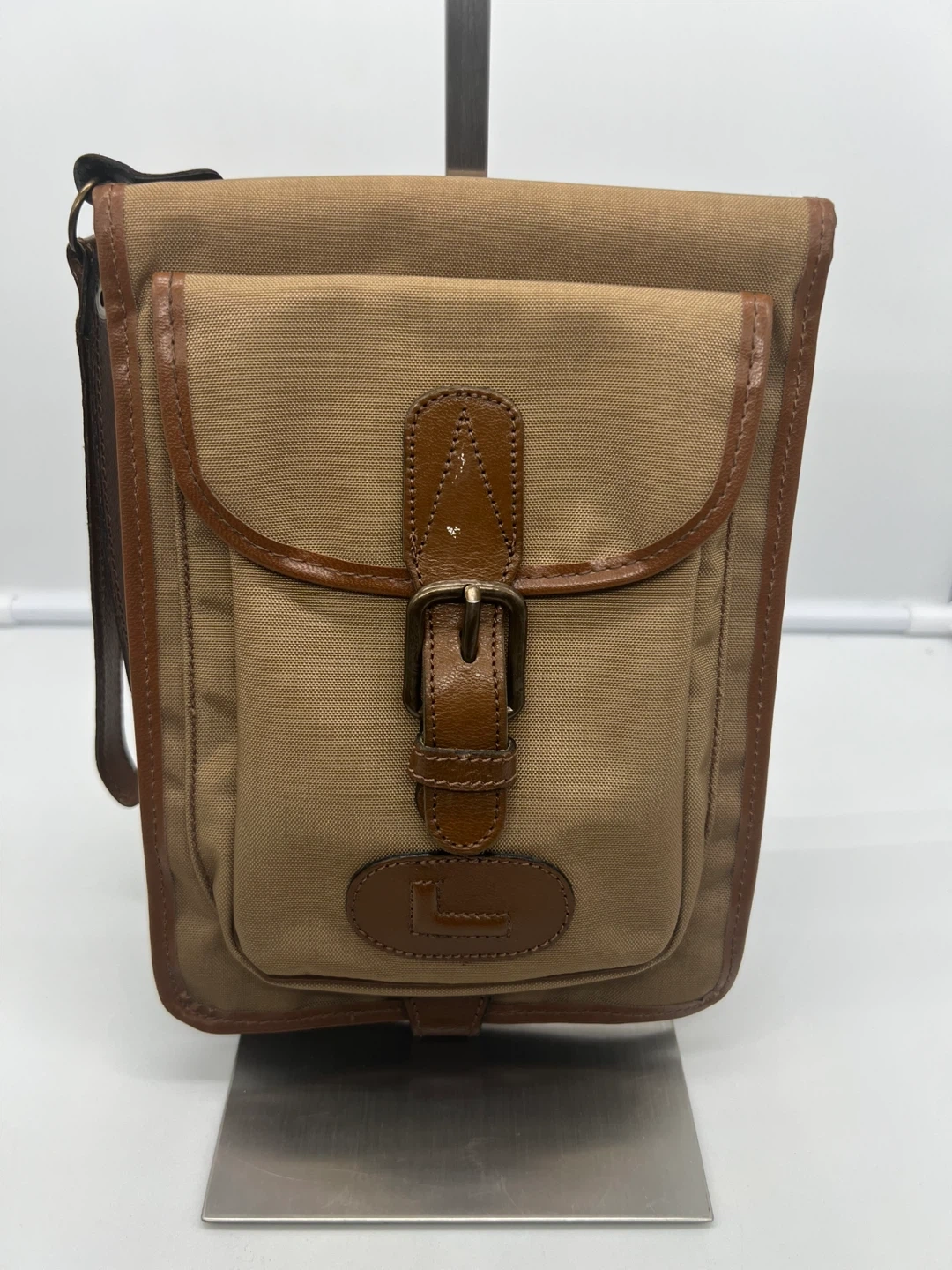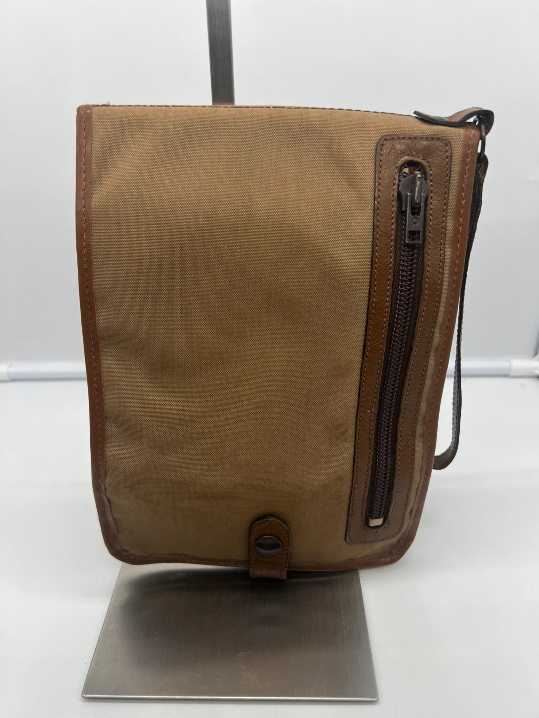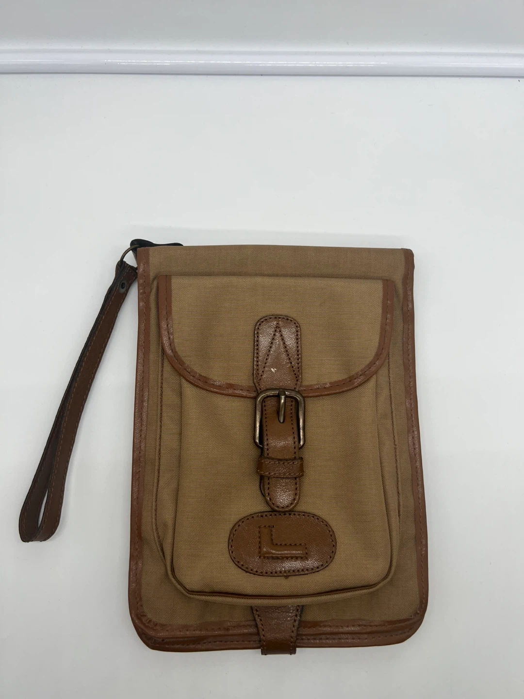 LANCEL VINTAGE Men's Camel Nylon Brown Leather Pochette Clutch