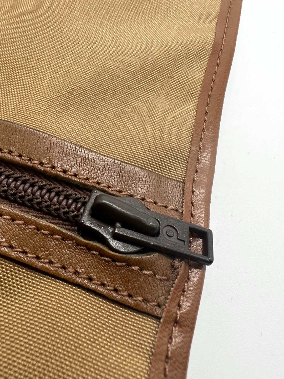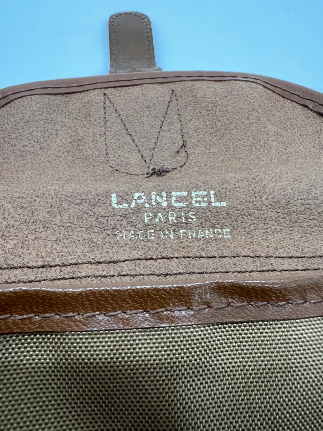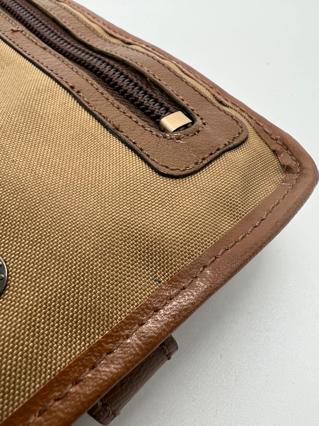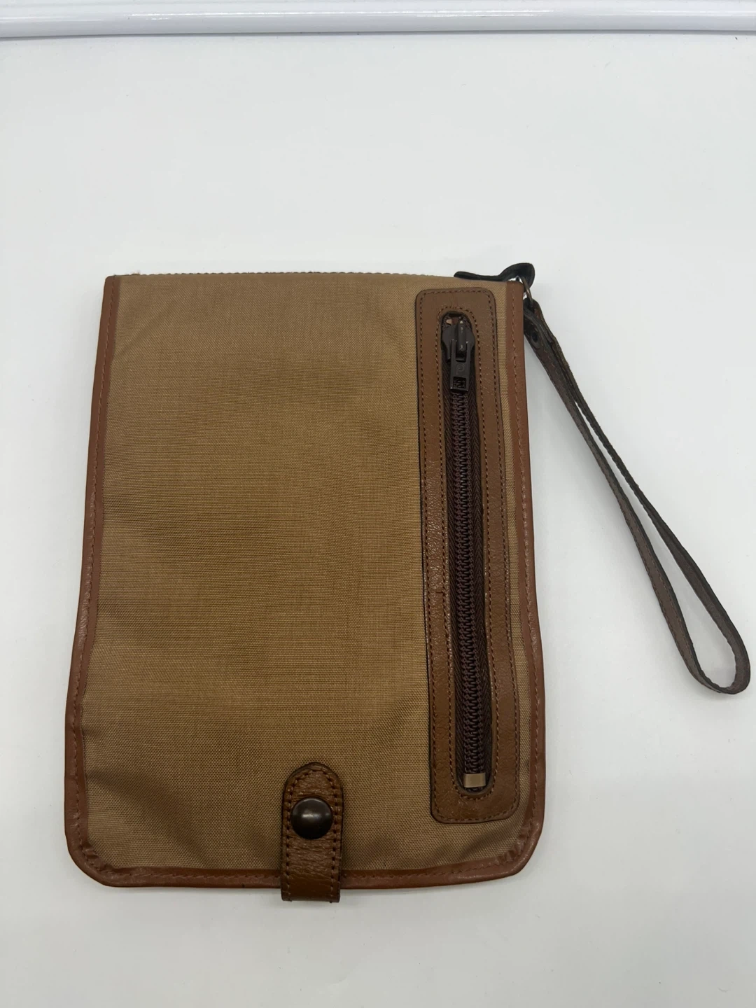 LANCEL VINTAGE Men's Camel Nylon Brown Leather Pochette Clutch
