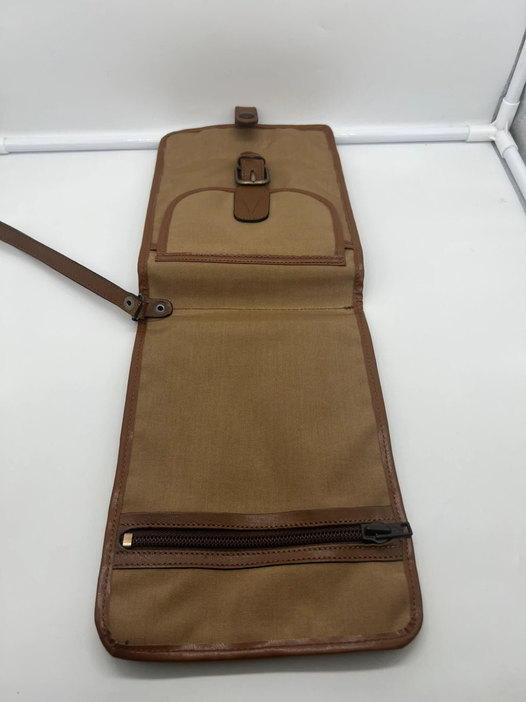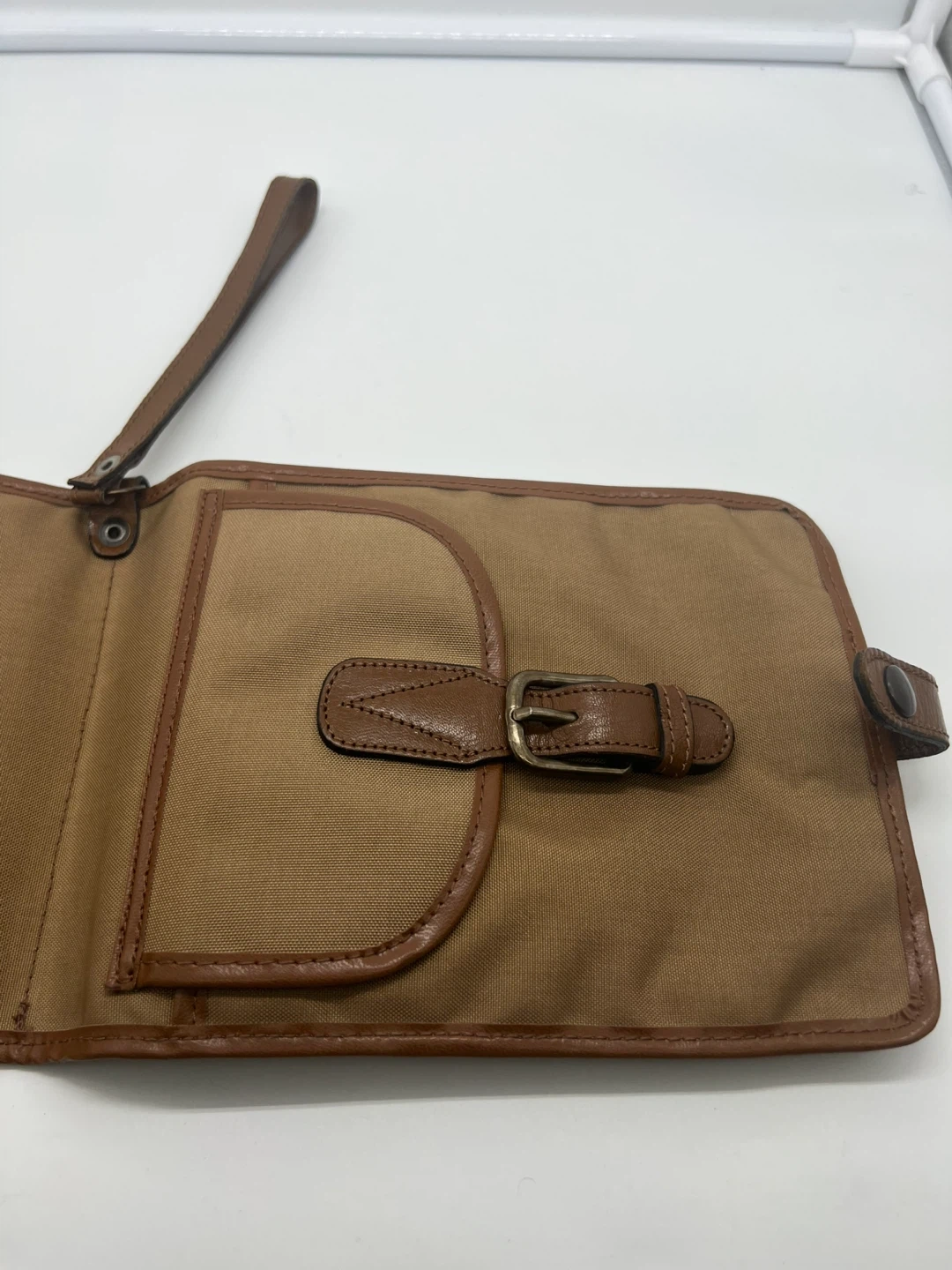 LANCEL VINTAGE Men's Camel Nylon Brown Leather Pochette Clutch