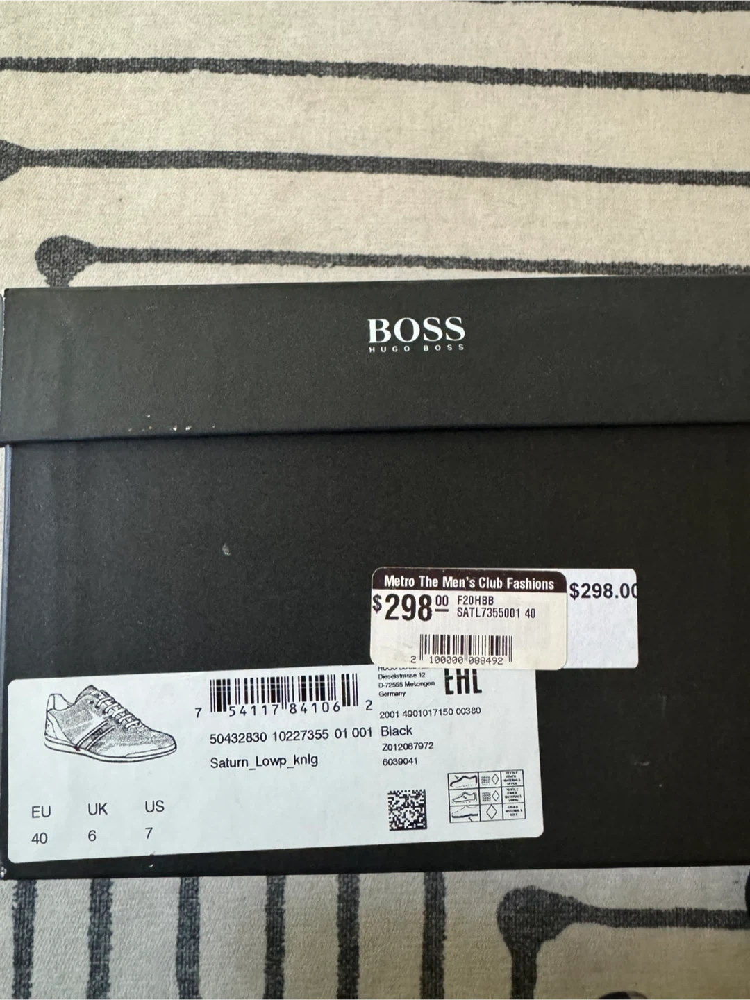 BOSS Hugo Boss Saturn Lowp knit sneakers in black. Includes original box. Size EU 40, UK 6, US 7.