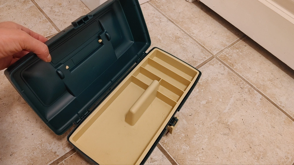 This is a Plano One Tray tackle box with a full-sized lift-out tray. It's perfect for organizing fishing gear. Constructed from durable plastic.