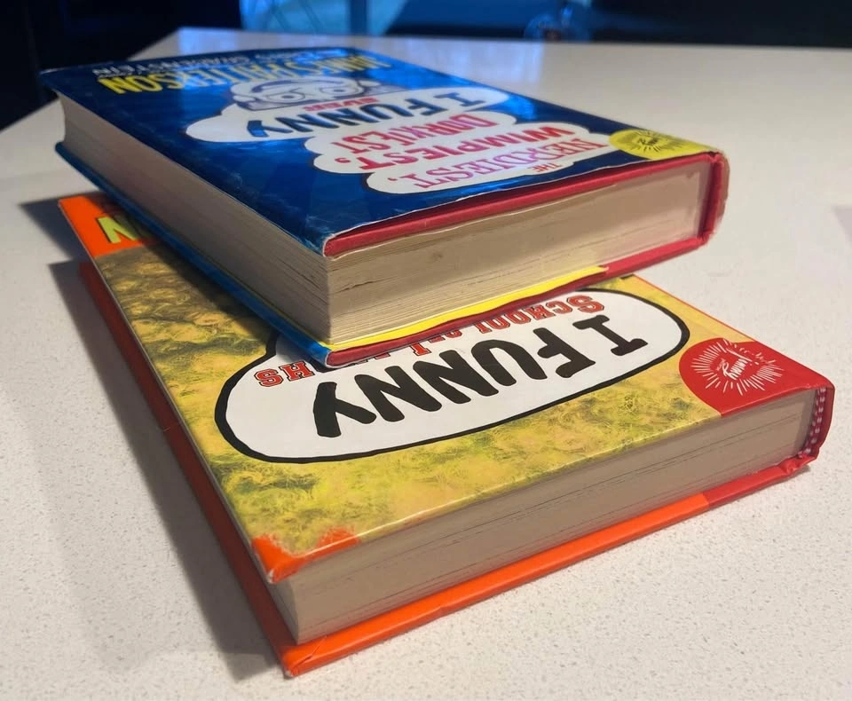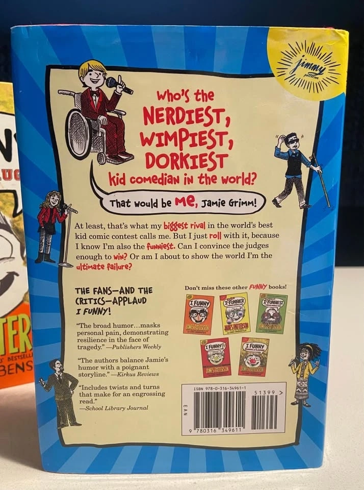 EUC hardcover books by James Patterson & Chris Grabenstein: School of Laughs (Book 5, 2017) and The Nerdiest, Wimpiest, Dorkiest I Funny Ever (Book 6, 2018). Retail $18.49 each, selling for $4 each. From a smoke-free home. Pick up in north end St. Catharines near Linwell/Vine.