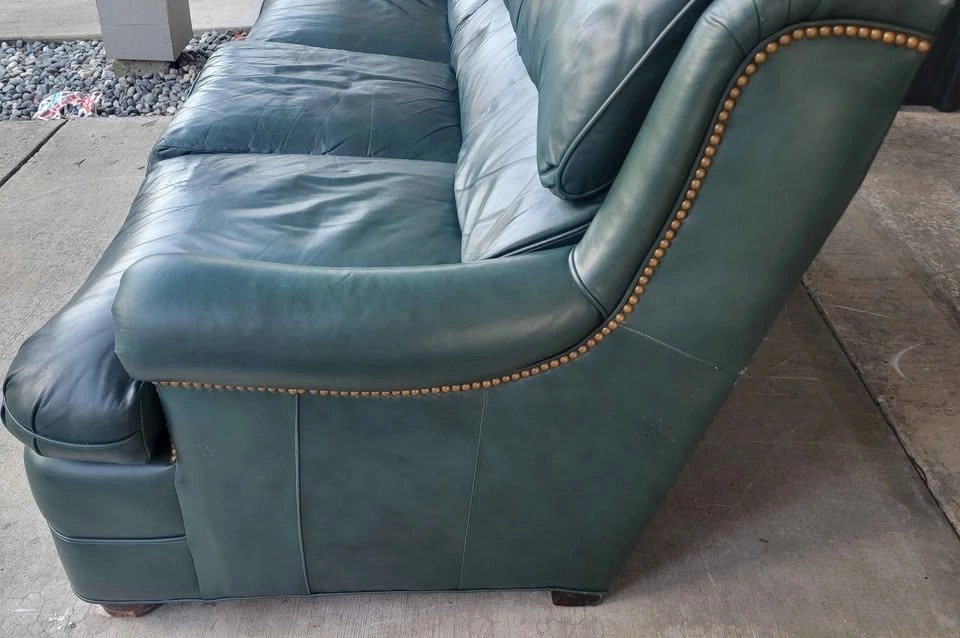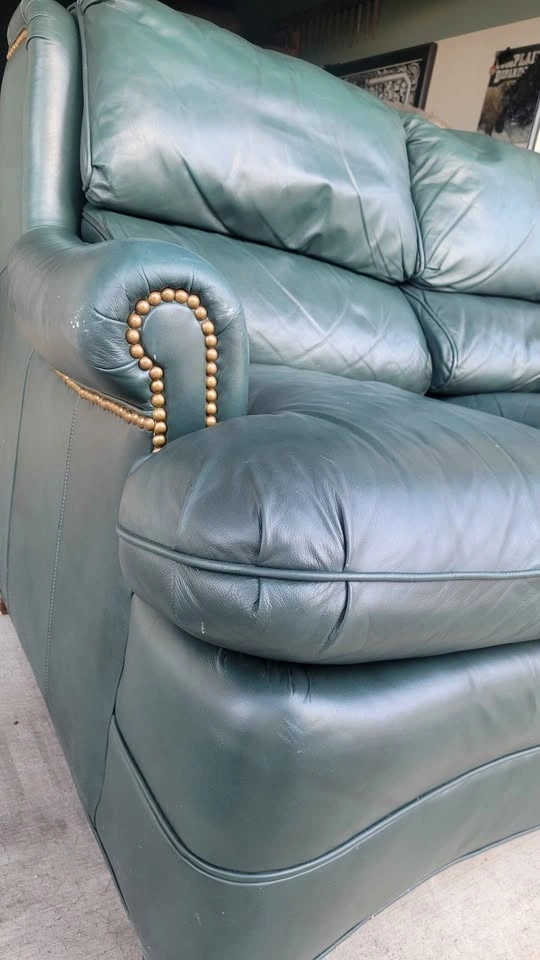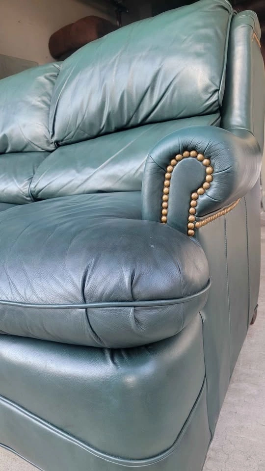 Selling this high end emerald green genuine leather Hancock & Moore 3 seater sofa in great used condition.