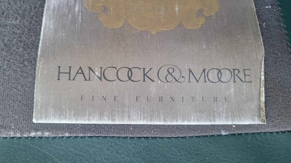 It also has hand hammered brass rivets and a solid hardwood frame with hand turned legs.