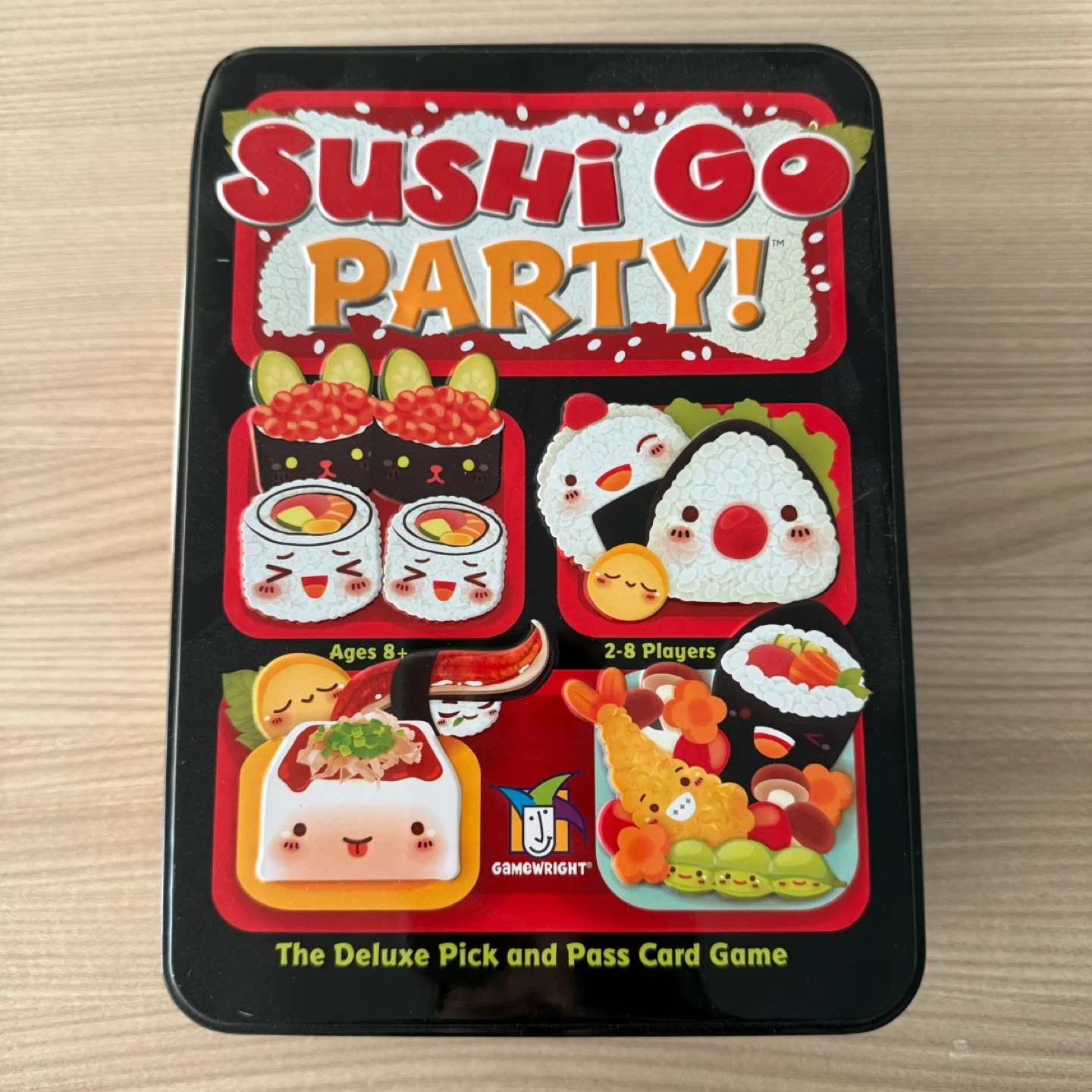 Selling a Sushi Go Party! The Deluxe Pick & Pass Card Game. It's a fun game for ages 8+ and 2-8 players. Great for family game night!