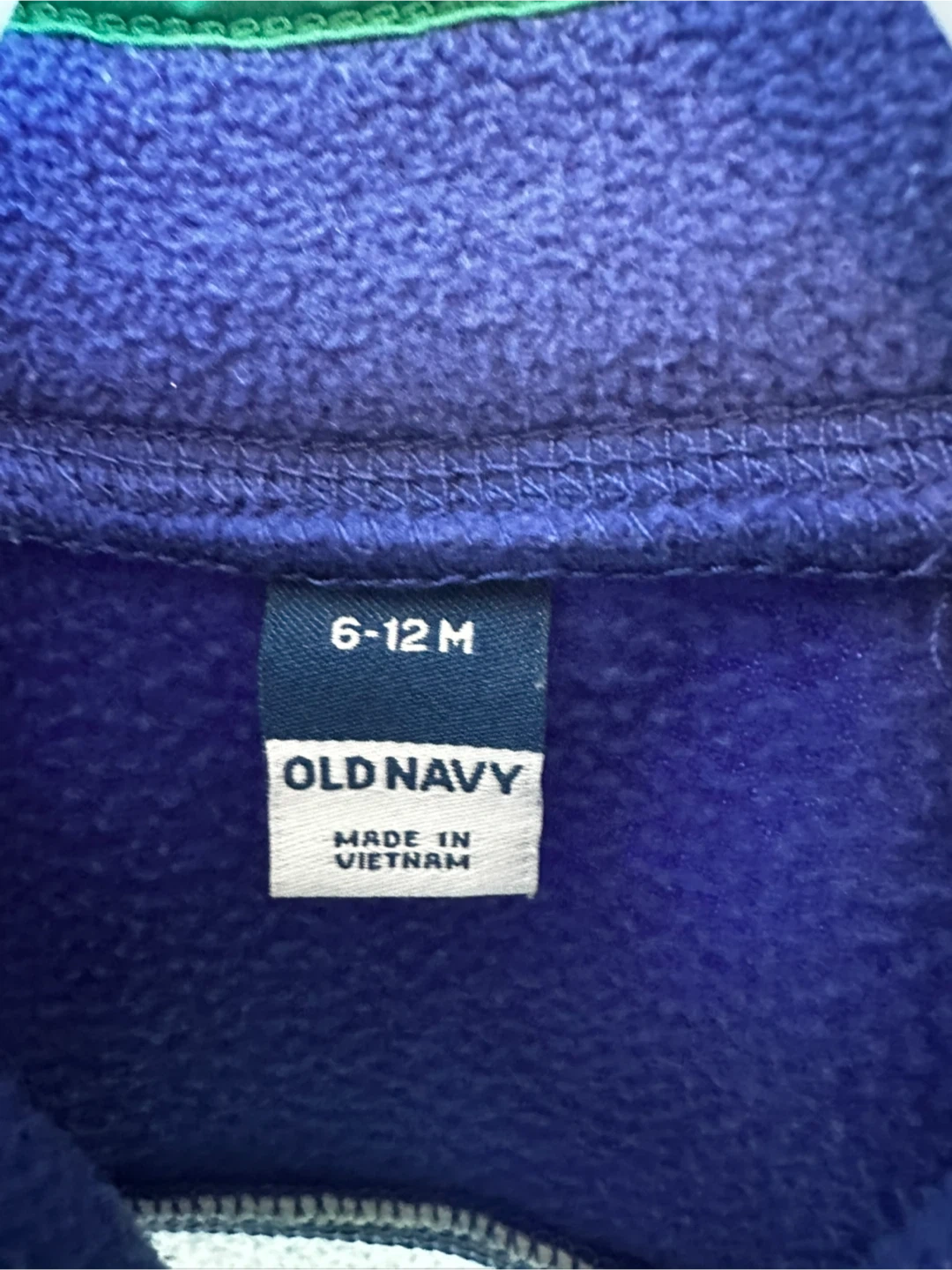 Cozy fleece bunting suit from Old Navy in a colour-block design. It's a size 6-12 months. This soft sleepsuit has a zip pocket on the chest and snap closures along the bottom for easy changes. Perfect for keeping little ones warm!