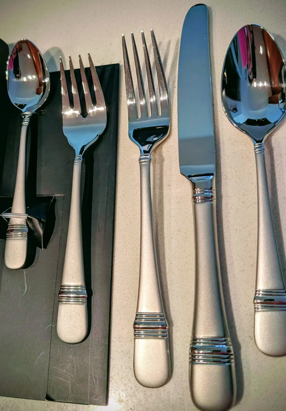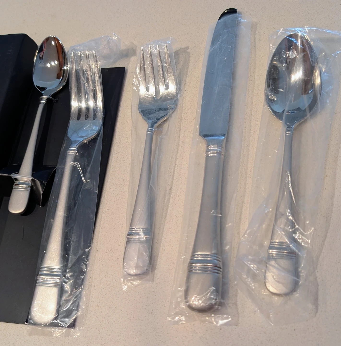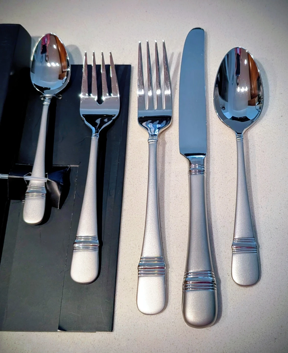 Selling a brand new Satin Astragal 5-piece place setting! It's still in its original packaging. Originally bought for $59.99