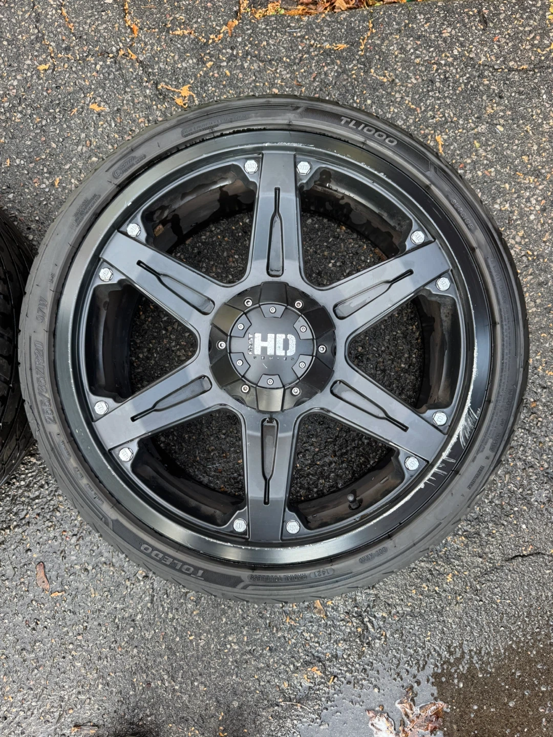 20Selling a set of four 20” x 8.5” HD Wheels Fast Rims. Tires are size 255/35ZR20. They are in used condition. Dimensions Diameter: 20.0" Width: 8.5" Specifications Manufacturer: Fast HD Model: Invasion Color: Black Finish: Matte / Satin Type of wheel: Alloy wheel (Mag) Additional notes: Some minor curbside surface scrapes on two of the rims. Tires are used and may have 20k KMs left on the rubber.