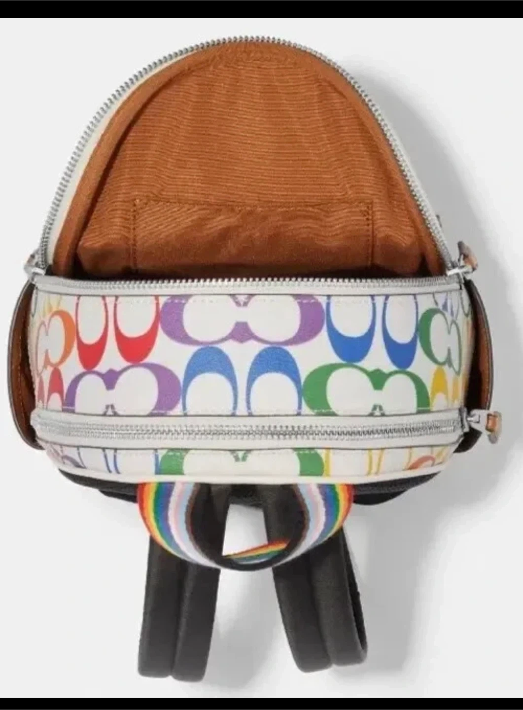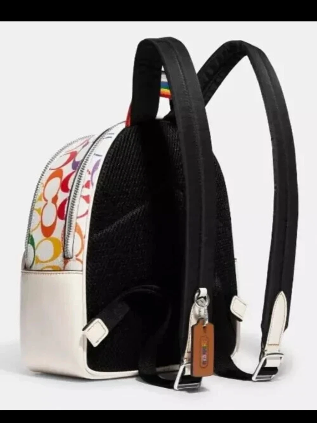 This is a Coach mini backpack in the rainbow signature design! Brand new with tags. It's super cute and in great condition. Originally $520.