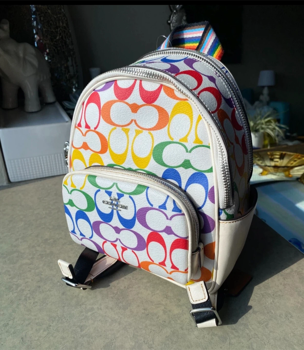 This is a Coach mini backpack in the rainbow signature design! Brand new with tags. It's super cute and in great condition. Originally $520.