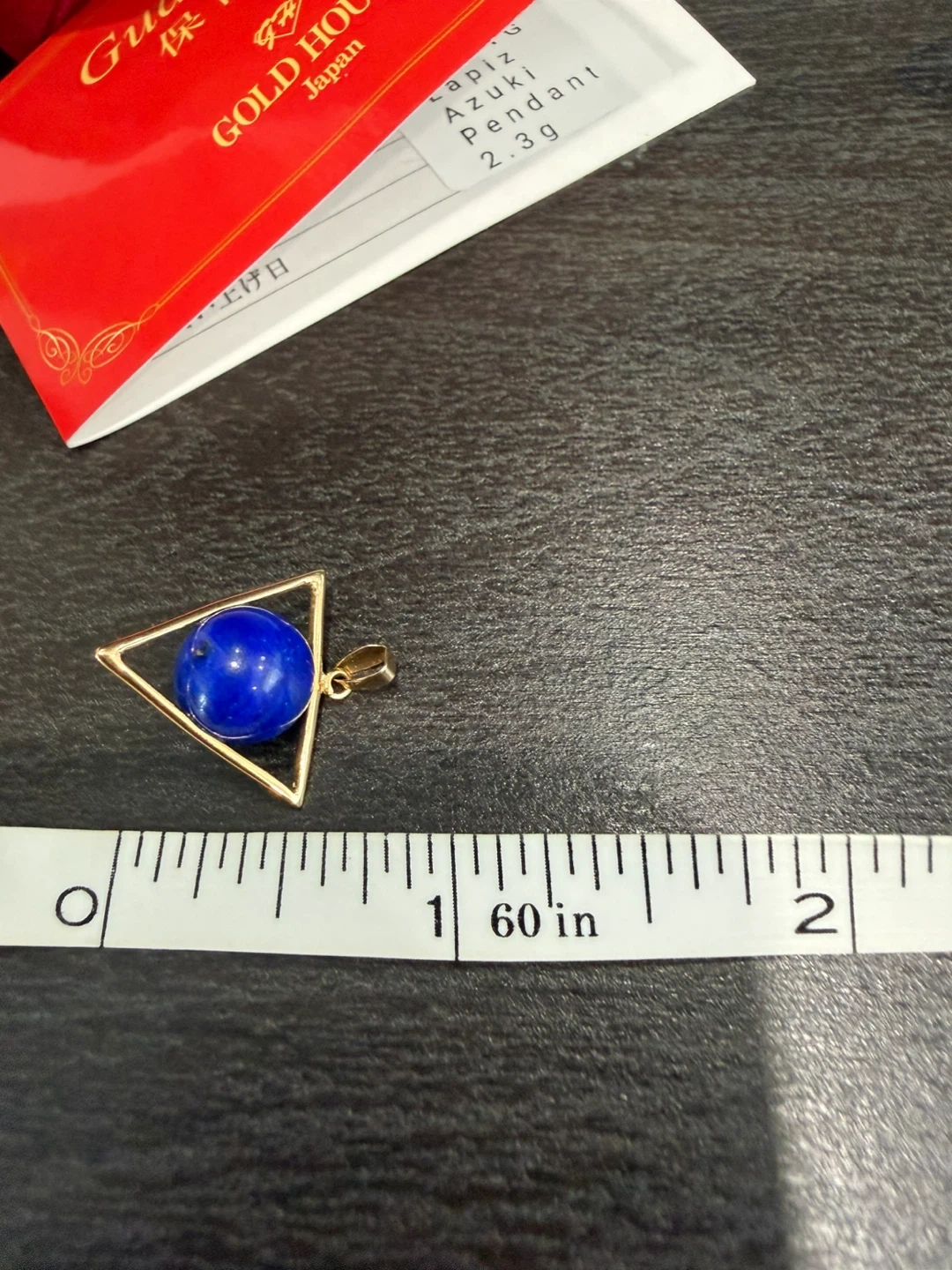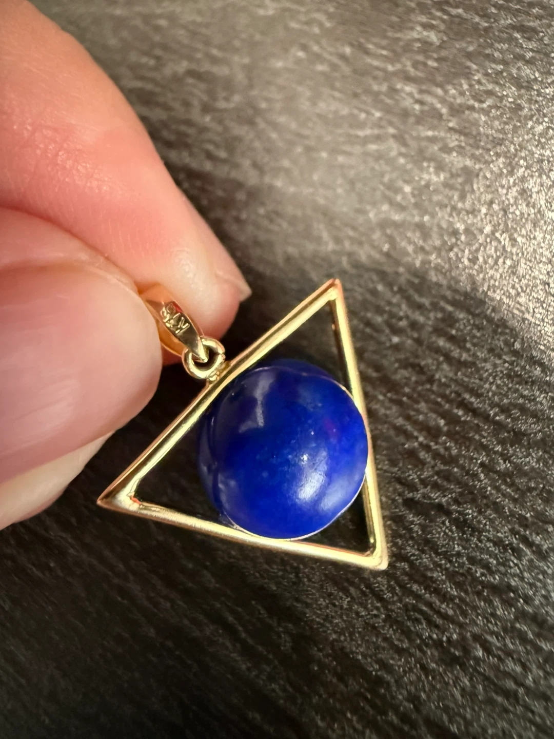 Natural Lapis Lazuli Triangle Pendant in 18K Gold Settings