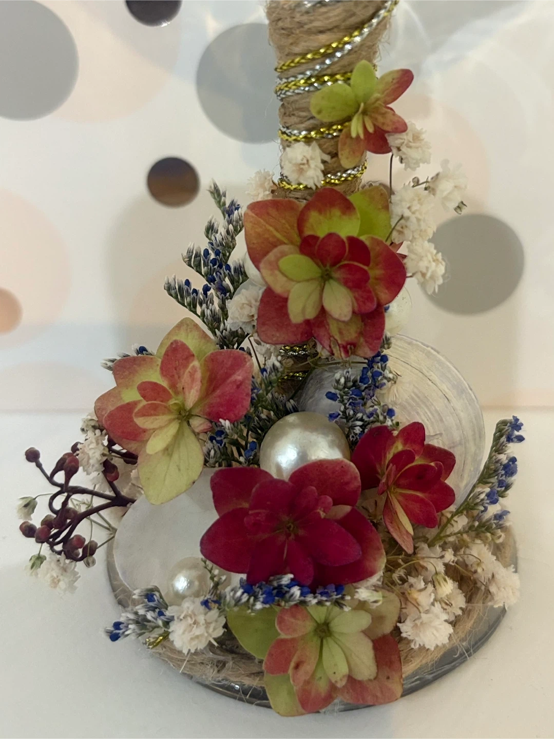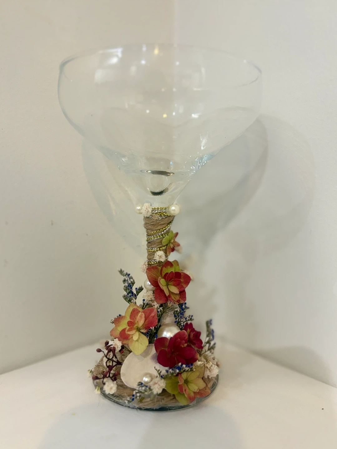 Selling a beautiful champagne coupe glass with unique floral and pearl decorations. Perfect for adding a touch of elegance to your home decor or special occasions!