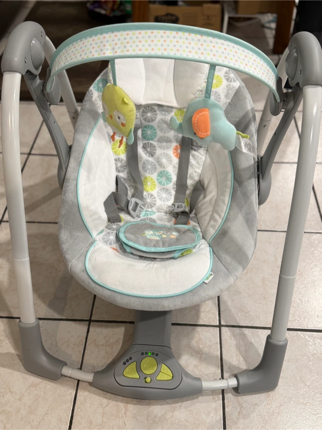 Selling a gently used Ingenuity baby swing! It's in great condition and comes with cute hanging toys to keep your little one entertained. Perfect for soothing and relaxing your baby