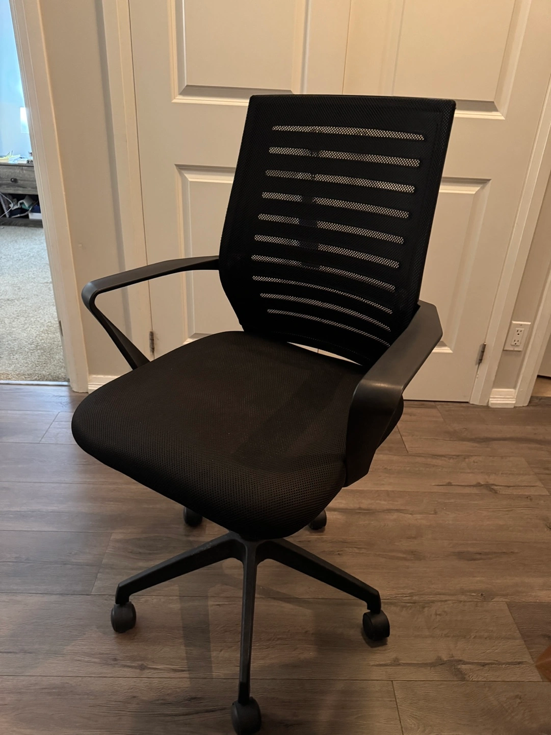 Buy & SellBlack Mesh Office ChairBlack Mesh Office Chair$50Black mesh office chair with adjustable height and swivel. Has five wheels. Good condition.WHERE TO MEETYonge & bloorView MapSELLERAlinaYorkville513 reviews3 chats·1 favorites·53 viewsSEND CHAT TO SELLERHi Alina! I’m interested in your listing.Hi Alina! I’m interested in your listing.Get the Karrot app to chatSign In to chat