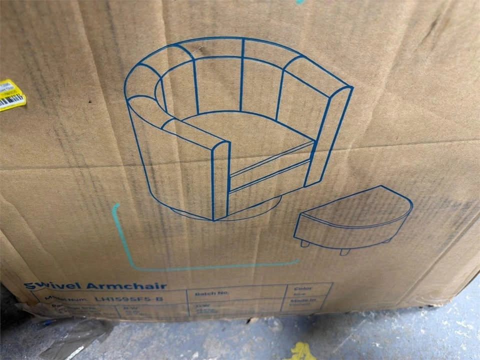 Brand New Blue Swivel Barrel Chair with Ottoman