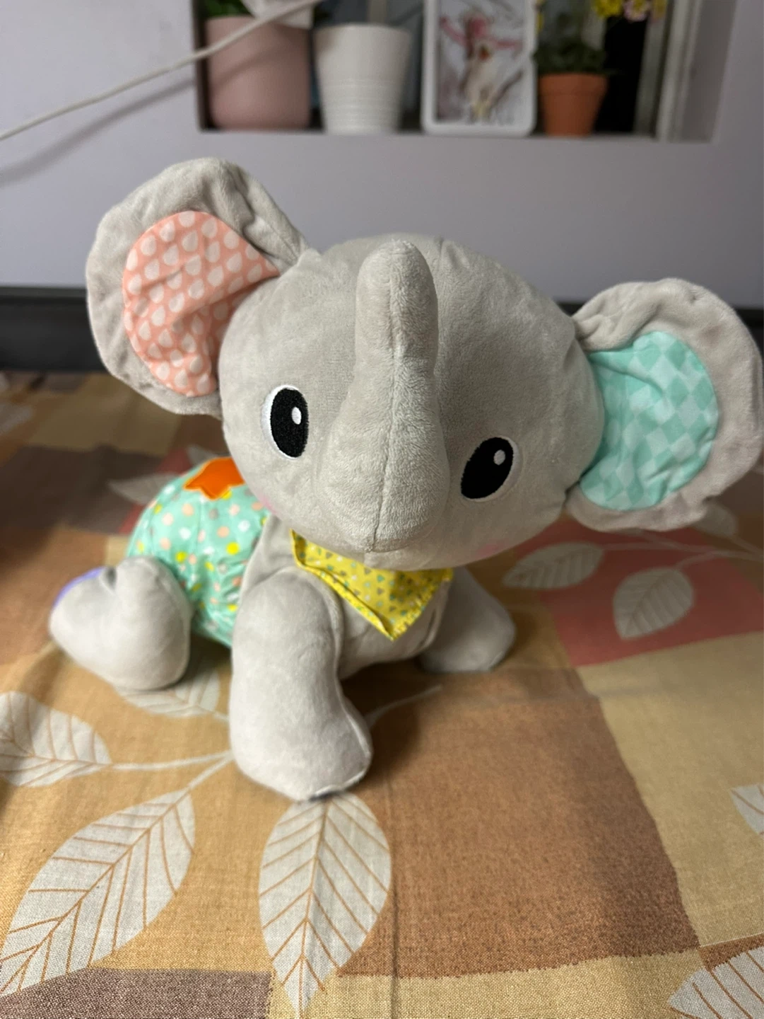 This cheerful Explore & Crawl Elephant with flapping ears encourages little ones to crawl and walk after him which develops gross motor skills. Babies and toddlers can easily press any button to get the elephant moving, making playtime easy and rewarding. Features 45+ songs, melodies, sounds and phrases to enliven playtime while also teaching about colors, numbers and daily life.