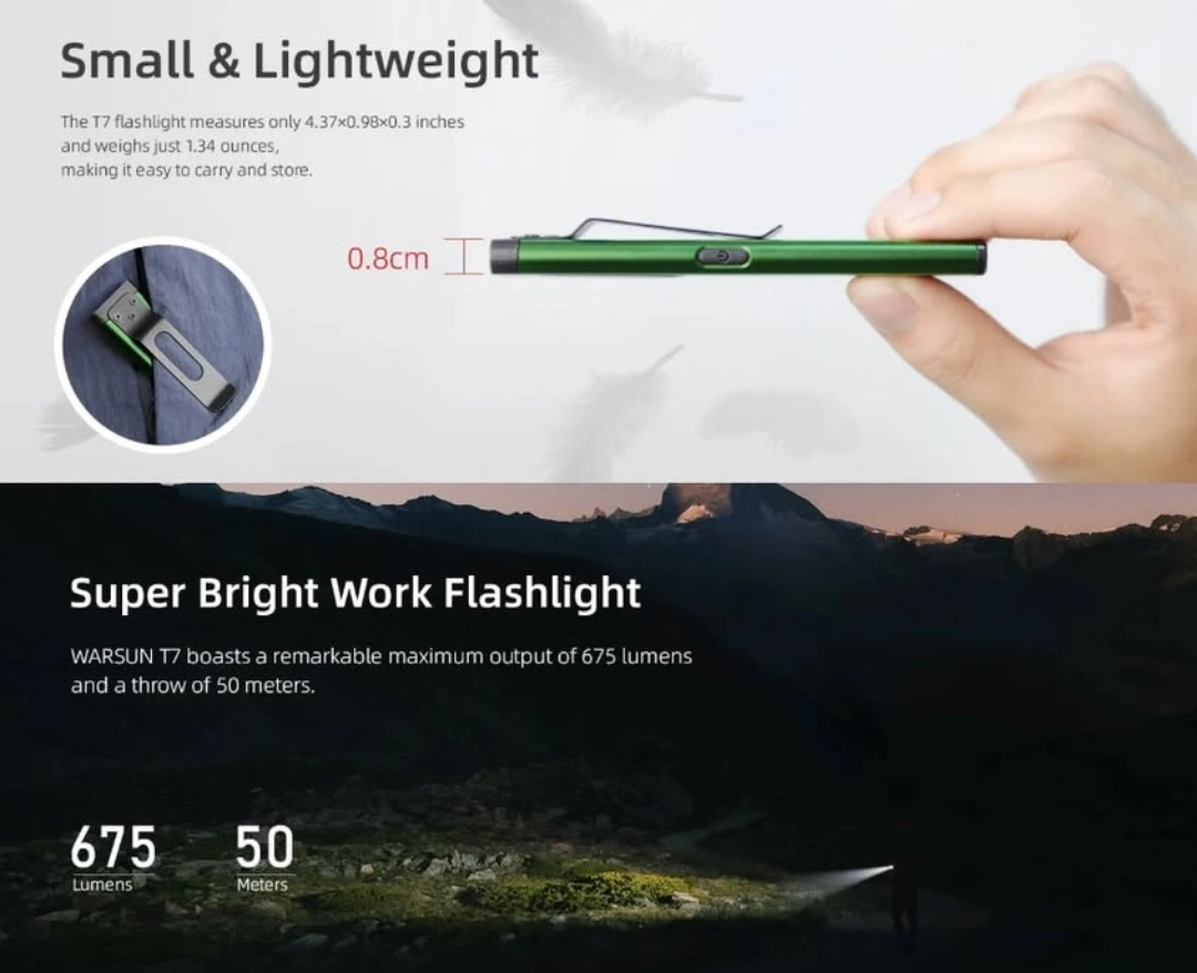 Warsun T7 Latest LED Flashlight Portable Mini Torch Light Pocket Lantern Flood Work Light With Magnet