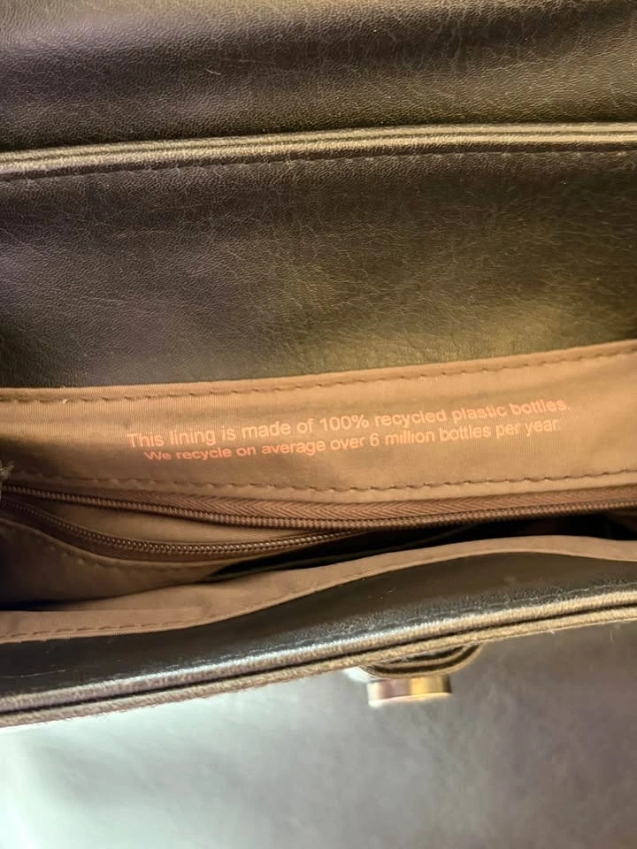 It’s a great vegan leather bag for work. It fits my macbook, mini umbrella, cosmetic bag and a small water bottle. The bottom seam needs a little fixing with some glue, but it doesn’t affect its function, nothing ever falls out because the lining is still intact. Pick up in Roncesvalles at the intersection of Dundas Street West and Bloor Street West.