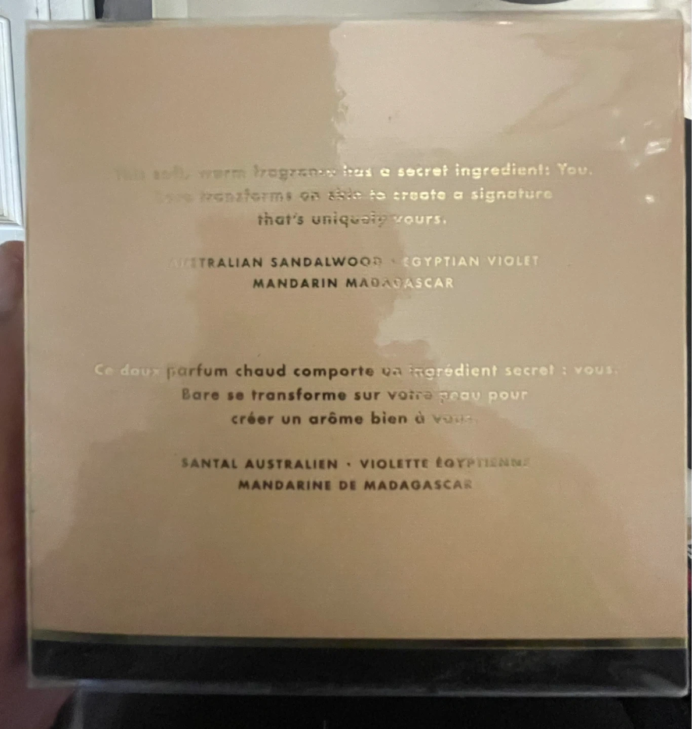 This soft, warm fragrance has a secret ingredient: You. It transforms on skin to create a signature scent that's uniquely yours. Notes include Australian Sandalwood, Egyptian Violet, and Mandarin Madagascar. 100mL / 3.4 fl oz bottle.