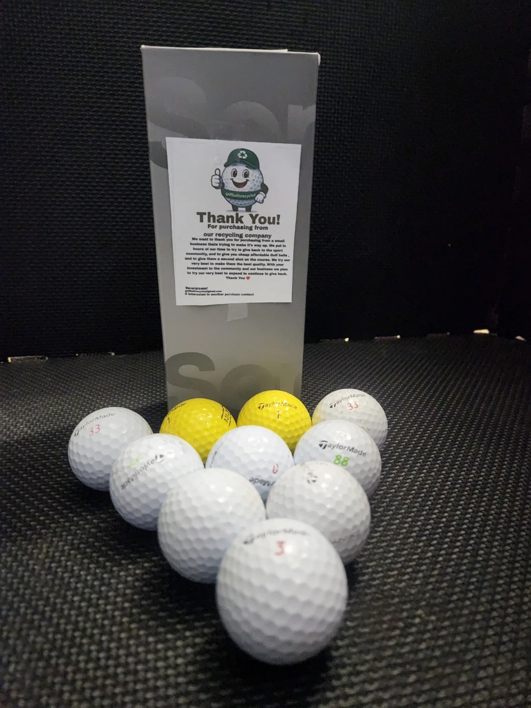 Selling a set of TaylorMade golf balls! There being recycled for a second life .Great for hitting the links!