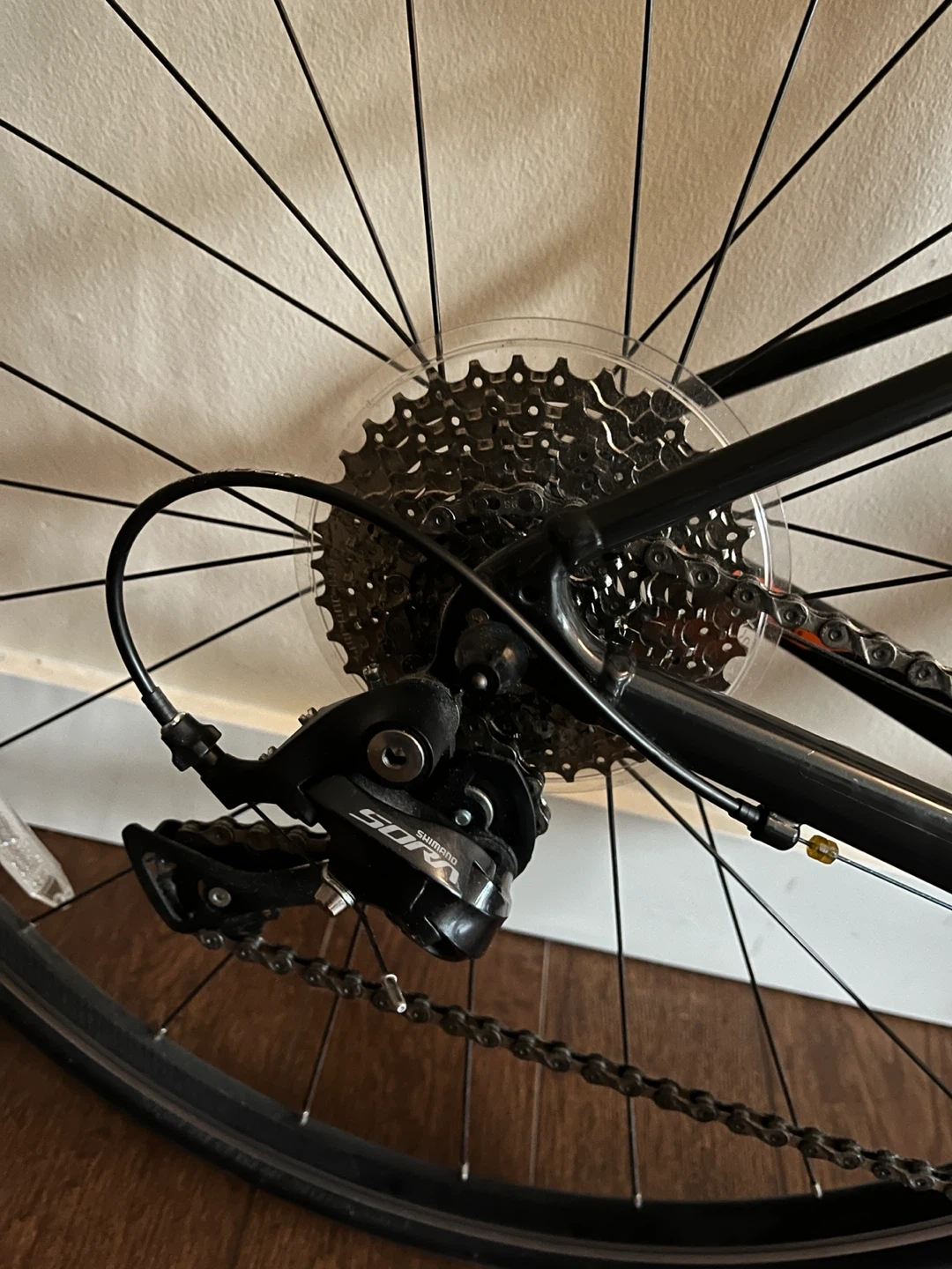Equipped with a Shimano Sora 2×9 drivetrain that shifts smoothly and provides a wide gear range for climbing and flats. This is a great bike for commuting, fitness riding, or getting into road cycling.