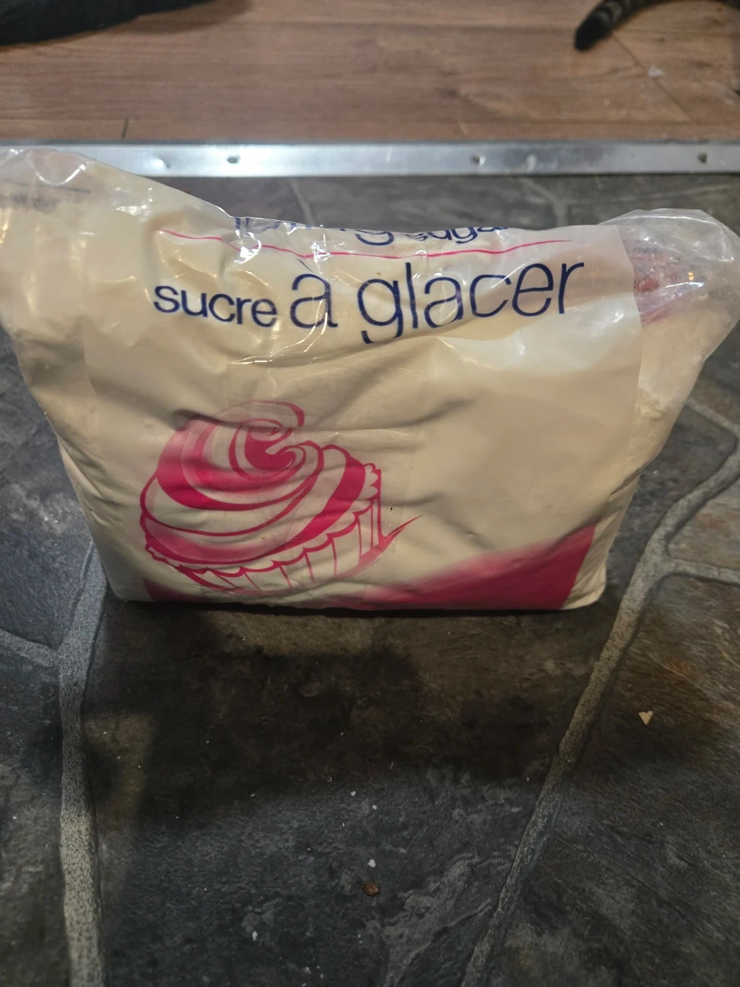 This is a bag of sucre à glacer, also known as icing sugar. It's perfect for baking and decorating cakes. Bag contains 500g of icing sugar.