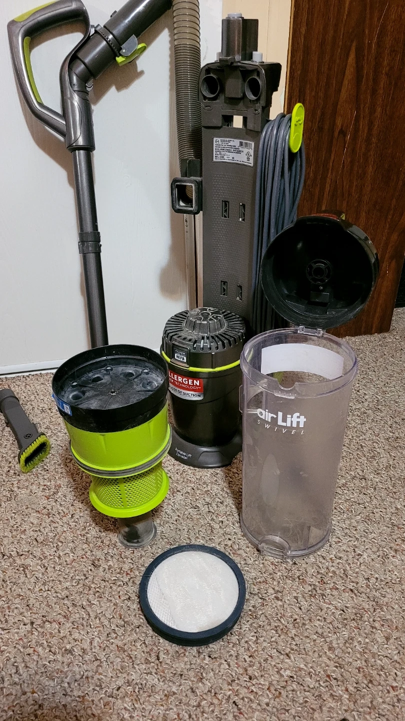 Hoover air lift swivel vacuum. Retailed for $399.99+tax. In good condition. Works great, very good suction. Main part disconnects so you can walk around and just use the hose (see pictures)