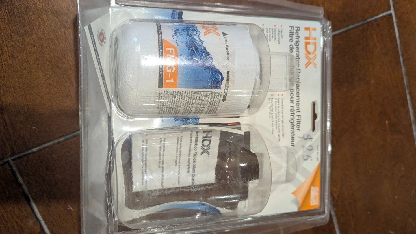 20Selling a brand new HDX refrigerator replacement filter! It fits GE refrigerators and removes chlorine, bad tastes, and odours. The filter works for up to six months or 1,135.6 liters. Originally priced at $25.