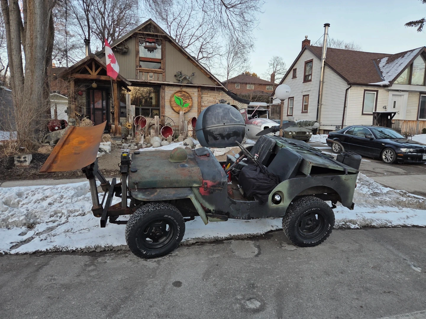 Modified Jeep with Snow Plow and Rack