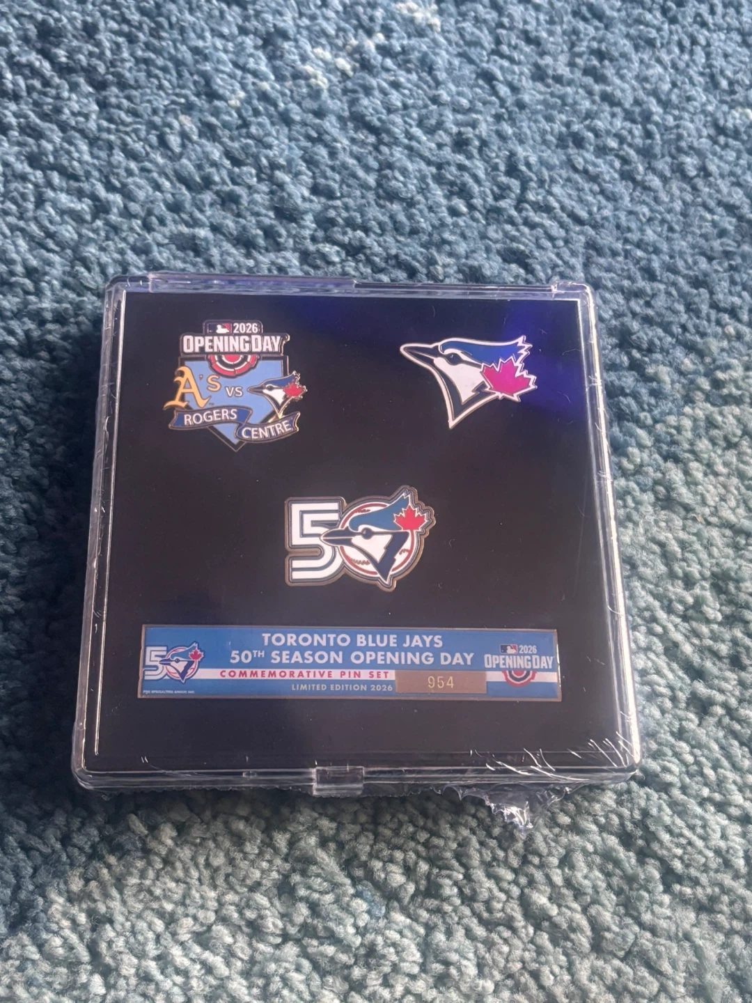 *BRAND NEW!* Toronto Blue Jays 50th season opening day commemorative pin set (3 pins). Features A's vs Rogers Centre, Blue Jays Logo and 50th Anniversary pin. Limited edition!