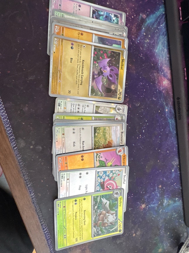 I'm selling a collection of used Pokemon cards that are great for collectors or players looking to expand their decks. These cards have seen some action but are still in good condition for play. Dive into nostalgia and see if there's a card you've been hunting for! I would like to sell them to a good home. If the ad's still up, they're still up for grabs! $20 but open to offers.