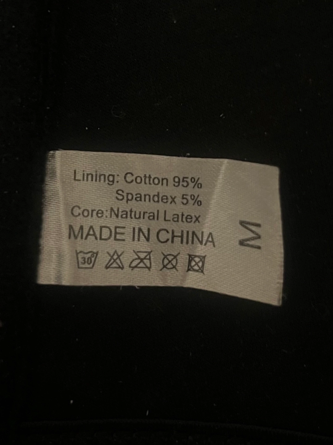 The lining is made of 95% cotton and 5% spandex, with a core of natural latex