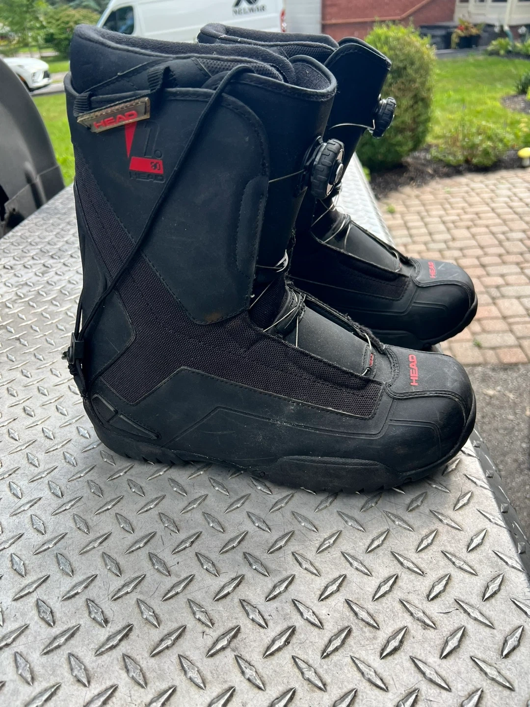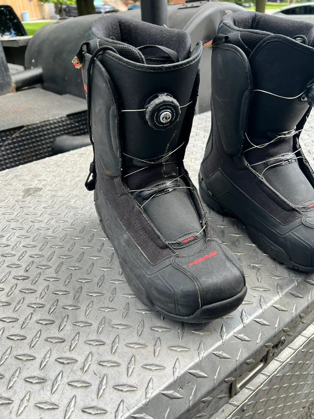 5Selling a pair of Head snowboard boots in men's size 10.5 US. They show some signs of wear but are still in good condition for hitting the slopes this winter!