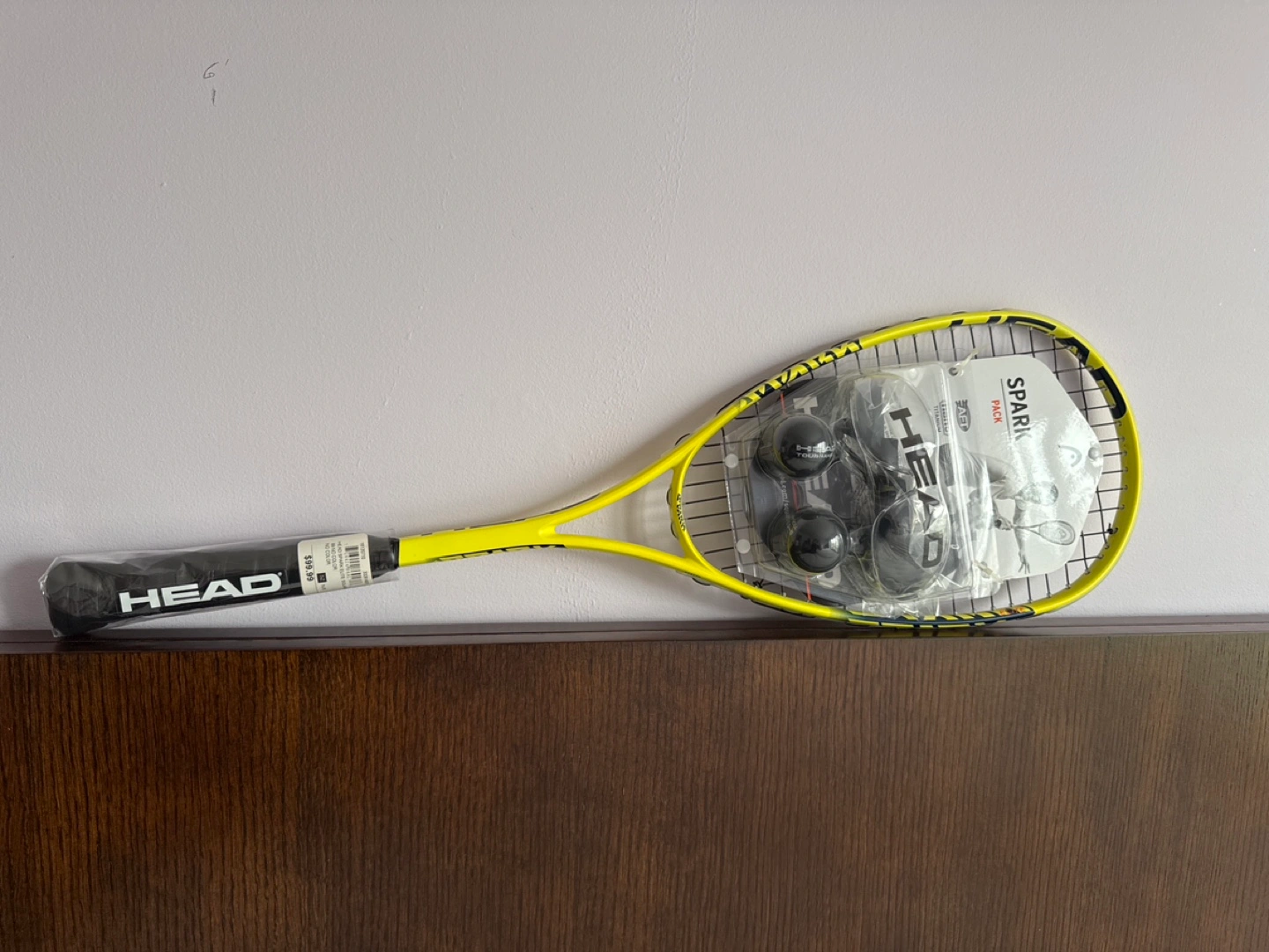 158New HEAD Spark Elite squash racquet. Includes two balls and protective eyewear. Yellow and black colour scheme. Great for players of all levels.